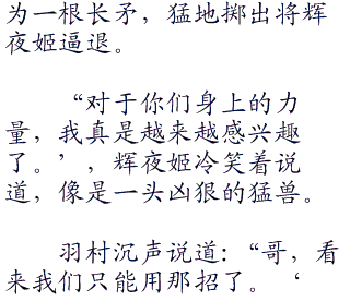 羽村眼神一凝,对着辉夜姬沉声说道:“母亲大人,你这样会毁了这个世界的。‘,