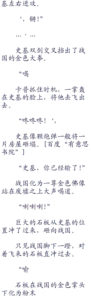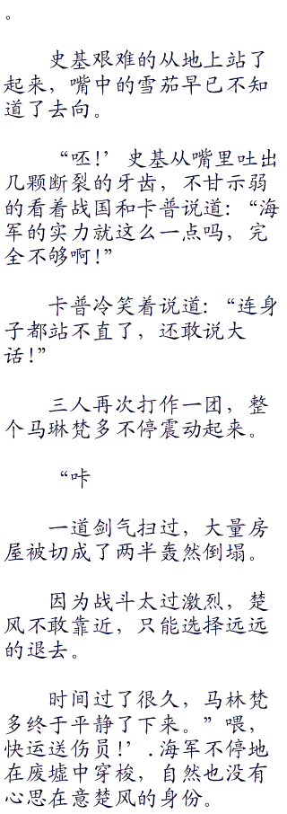 楚风刚离开没多久便听见远处传来巨大声响,知道金狮子史基已经同战国、卡普交上了手。