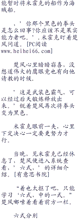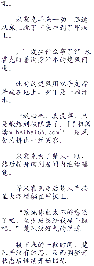 米霍克在楚风一拳下倒飞出去,将甲板砸出来一个深坑,整个人也掉了下去。有意思_书院