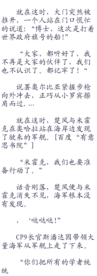 “萨乌罗,你见去过伟大的航线,那你知道空白的一百年吧?’罗宾突然开口问道。有 ┓意 ┓思 ┓书 ┓院