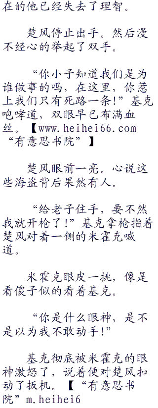 “把手给我放开的!’.大汉对着米霍克怒声喊道,同时将手摸向腰后。w.ww.heihei6 6.co.br />