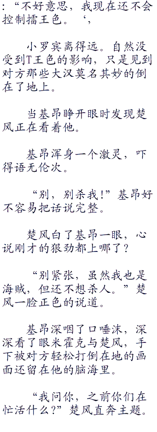 楚风耸肩说道:‘.这句话应该是我问你,你们应该不是简单的海贼吧。”