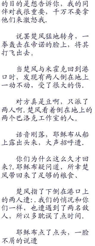 不百你有什么目的,如果敢对我的同伴下杀手,我定会杀你们到天涯海角!.楚风冷着脸低声说道.