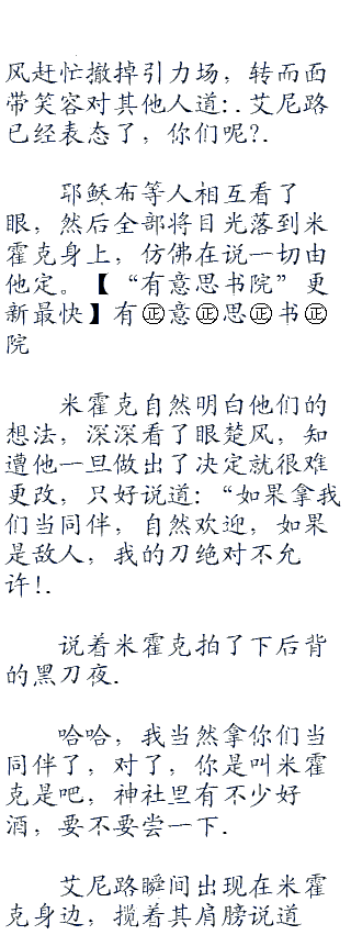 楚风明白艾尼路的想法,也深知他可能从未有过同伴,如果这种时候再不调节下他与大家的关系,将来一定会成为一颗炸弹.