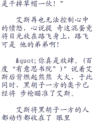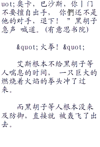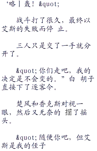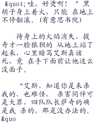 艾斯冷哼一声道:"免了,现在还叫我 队长,这个称呼是懂得尊敬的人用的,别把 我当白痴。”