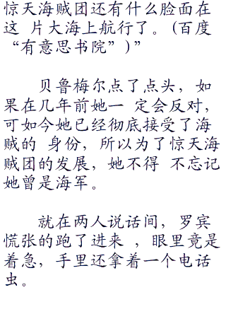告别了香克斯,楚风等人在返航的时候 接到了海军本部的电话。()