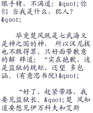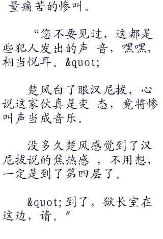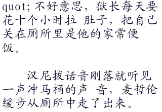 "狱长那混蛋,不,狱长麦哲伦在第四 层的狱长室,我和副看守长多米诺将负责带 路。,,