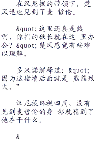 因为命令,楚风只能独自一人前往监狱 内,临走前对着米霍克等人道:“给我两个 小时的时间,如果我两个小时后没能出来, 你扪就想办法离开这里。〃