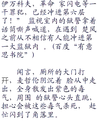 一个狱警瞪大眼睛看着前面的显示屏。 "那个大汉,不就是伊万科夫吗,糟糕 ,快通知前往的部队,楚风和伊万科夫联手 了!"狱警急声说道,他之前没想到事情会 发展都这种地步。