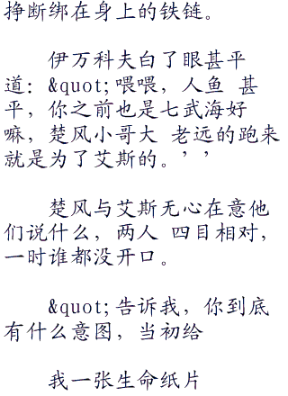同时伊万科夫也知道,不论楚风能否救 出艾斯,他这个七武海是当不成了。<b(bie h)r/>