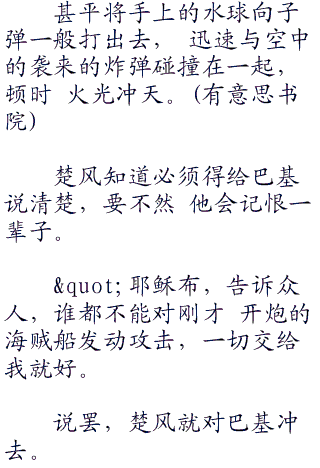 巴基的部下顿时摸不着头脑,心说船长刚才还下令谁都不许进攻,这没过多久怎么 又改变主意了?