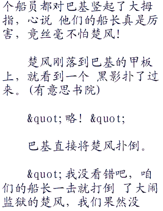 骂完巴基转而看向身后的船员,怒吼道:"你們还看个球啊,把本大爷扶起来啊!”