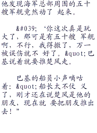 "混蛋!按照我的命令,给老子把他击 沉! 〃巴基歇斯底里地喊道。