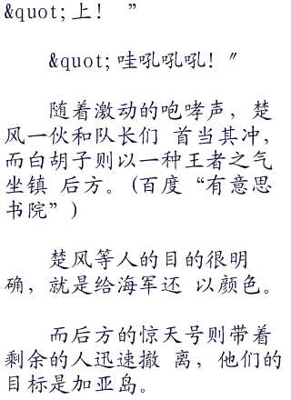 耶稣布突然想到了一个的事情, 想了下对众人说道:"这是我们惊天海贼团 和白胡子海贼团的第一次合作,不如起个有 纪念意义的作战名称吧,叫惊天和白胡子联 合的对抗海军大作战吧?〃