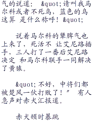 "话说,船长,我若是一不小心把大将 宰了的话真的不要紧吗? 〃艾尼路一脸认真 地问道。