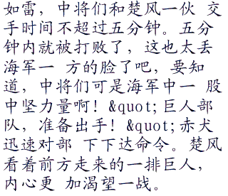 “那就比试一下,看谁打倒的海军多吧 。〃楚风饶有兴趣的说道。