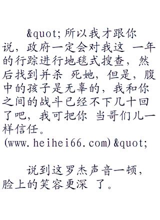 "哈哈,熊是自愿成为政府研究的人类 兵器的实验体,先是手,接着是脚,在维持 本人意识的状况下,身体各部分逐步接受了 旷曰持久的改造!〃