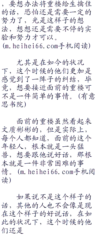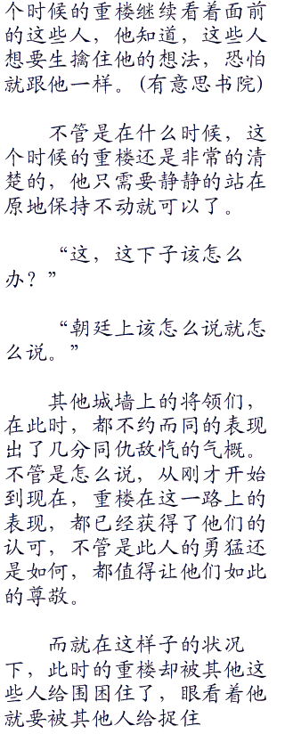 不管是怎么说,在如此的情况下,这个时候的重楼自然是十分的清楚,以他现在的处境,假如不想办法将面前的这个家伙给擒住的话。有.意思书院首发想要活着回到城墙上,几乎是一件不可能的任务,只不过,在如此的状况下,这个时候的重楼还是感觉到了几分纠结。