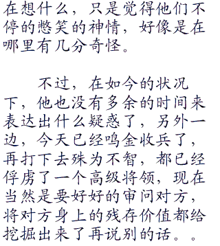 想必,这个倒霉的家伙,也没有料到,作为一个高级将领,被俘虏了之后,居然会是这般待遇。要知道的是,在他的想象之中,一开始的这些大宋的官兵,怎么说也应该将他带到角落里面严刑逼供外加拷打一番之后再让他经历各种非人道的待遇。