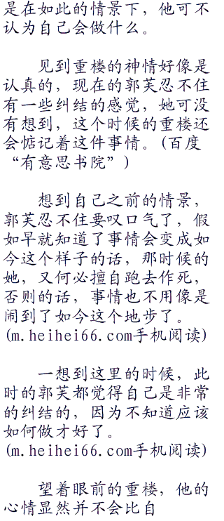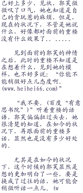 否则的话,在回来之后,重楼也不用那么的感动,他还真的以为这位郭家大小姐仿佛是真的转了性子,以至于,他都忍不住好好的疼爱一下这位大小姐。然而,在得知了事情残酷的真相之后,重楼已经懒得多理会眼前的郭芙了。