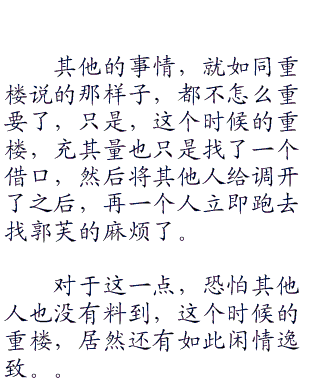 与旁人的想法多少是有几分不同的是,在当时的状况下,那时候的重楼确实是认为,郭芙是在为自己担心。首发