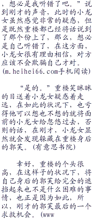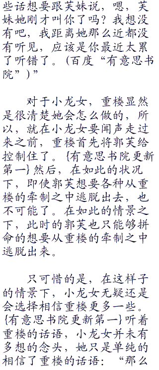 幸好的是,就在郭芙想着这些有的没的时候,重楼已经忽然转过身去,放过了身前的郭芙。有意.思书院首发