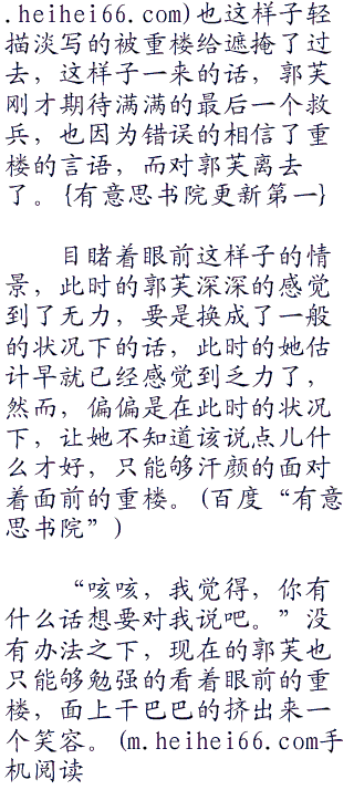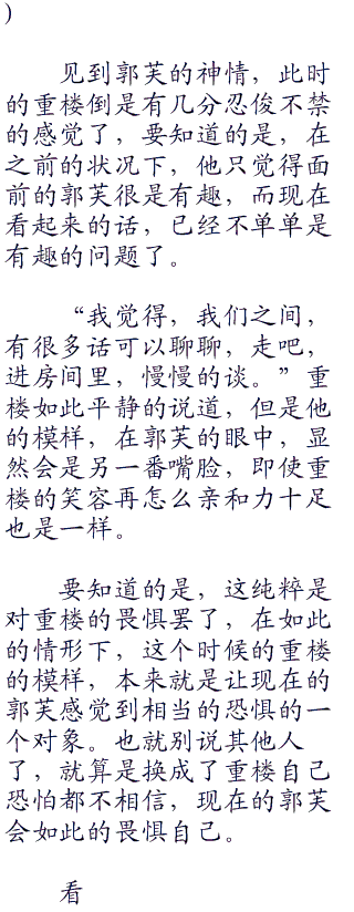 望着眼前的重楼,此时的郭芙显然是在不经意之间,陷入了两难的境地,也不知道是什么时候的事情,在如此的状况下,此时的她深深的感到了几分无力。也不知道是什么样子的状况下,才会形成如此的情况,只是让郭芙很是懊悔,早知道如此的话,自己当时就咬定了说自己还在担心着重楼不就成了。