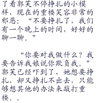 在这夜晚的情景下,现在的郭芙也清楚的是,她没有其他的办法可以对付面前的重楼,而就在这样子的情景下,她想要跟面前的重楼较劲显然也是不可能的了。