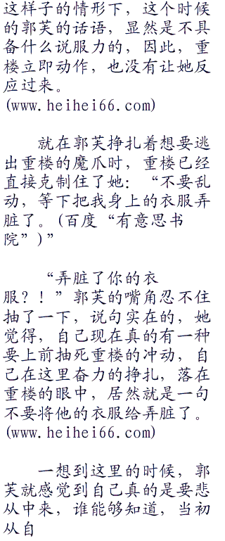 “你做什么?”郭芙吃惊的看着自己面前的重楼,显然是没有料到他会真的硬上。