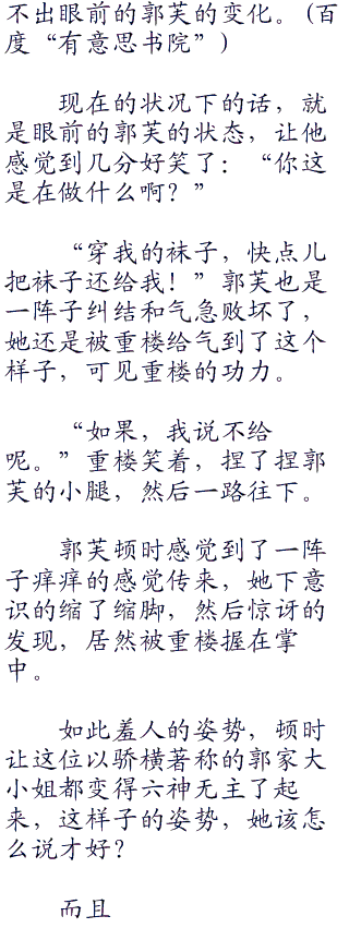 在如此的状况下,这个时候的郭芙感觉确实是非常的奇特,她并不知道现在的重楼是想要做什么,但是光是在如此的状况下,这个时候的她感觉确实是非常的奇特。这种被人占便宜还不怎么讨厌的感觉到底是怎么回事,实在是要命了。