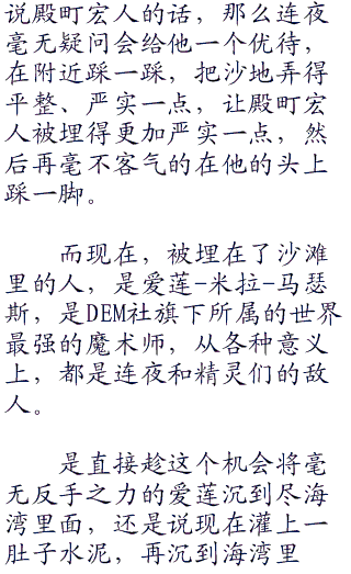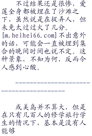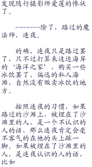 爱莲讶异的皱起了眉头,虽然是私人的沙滩,但是连夜的现在的行径,不可谓不夸张,一个人和6个【美】少女同处在一片私人的沙滩上,光是想想,恐怕就会让人躁动不安。