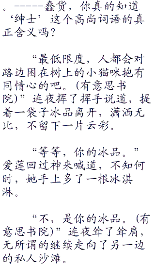 “-----”说句实话,爱莲现在的情况,看起来还蛮可怜的,甚至不由得让人有一些心酸的样子。触景生情,----连夜不由得幸灾乐祸了起来。