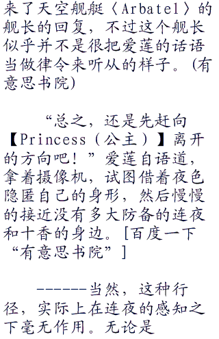 “目标离开了旅馆。让〈Bandersnatch〉部队,保持待机的准备吧。”因为从天空舰艇〈Arbatel〉之上,只能够看到一张张小丑(Joker)在狞笑着的卡牌的缘故,爱莲需要近距离监视,并且跟上夜刀神十香的动作,同时还需要将情报传达给〈Arbatel〉之上。“唔嗯,-----,我们的目标,只是那一个精灵少女罢了,让〈Bandersnatch〉部队不要伤害那个无辜的普通男子高中生。”大概是出于私心吧,爱莲追加补充了一句。