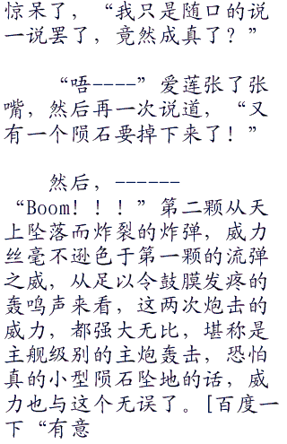 “----”天空上降落的流弹掀起了周围‘轰隆隆’的一阵爆炸声,爱莲同样的