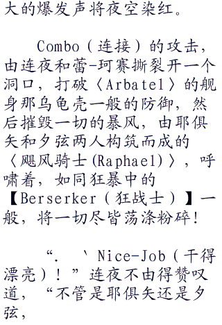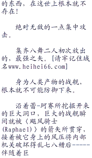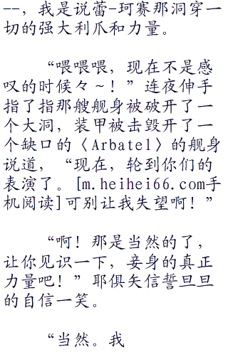 两点一线,然后那艘〈Arbatel〉的舰身之上,出现了一道令人心摄的巨大黑色洞口,无可置疑的,蕾-珂赛强行挖开了一条横贯了〈Arbatel〉舰身的虚空隧道。