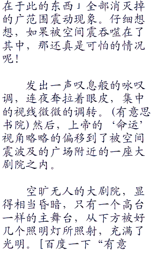 家里客厅中的巨大玻璃窗微微地震动着,街道中开始响起了空间震的警报。保持了数十天的休闲生活格局,因为这种突如其来的动荡,在一瞬间被打破。