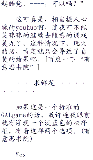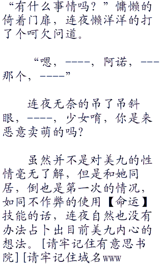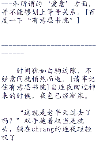 不过料想就算是真正的观看了由连夜与诱宵美九所呈现的图景,鞠亚小萝莉恐怕也会一本正经的指出,这种行为,只不过是人类这种生物,作为生存和繁衍的必要而进行的交♂配行为罢了,--