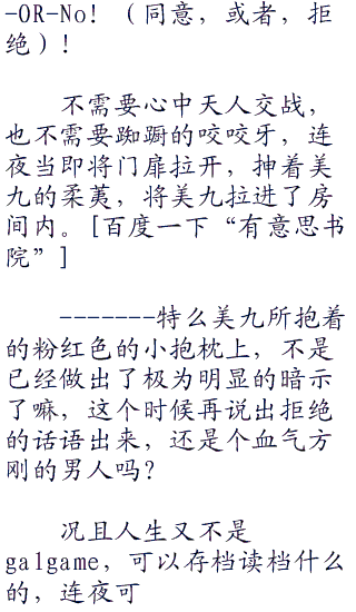 如果连夜听到了鞠亚小萝莉这一声无意识的疑问,大概会坏笑的说一句,-----“不,这不是‘做♂爱’,‘做♂爱’,可是在那之后,更为劲、爆的事情唷~~~”