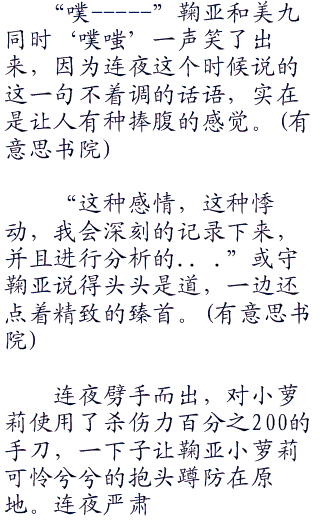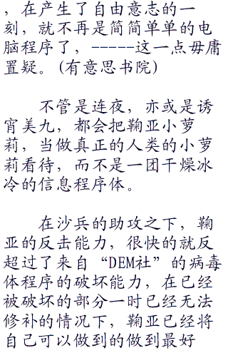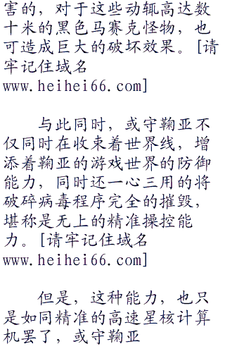 比起那些毫无人类的意志,只会遵循着既定的程序,对或守鞠亚的电脑世界进行破坏的普通黑色马赛克怪物,在歌姬的BUFF(增益)效果之下,将长矛舞得愈加虎虎生风的沙兵们,在第一时间就取得“零零零”了战斗的上风,要知道,沙兵们的每一柄长矛,都是具备着撕裂的穿透性伤