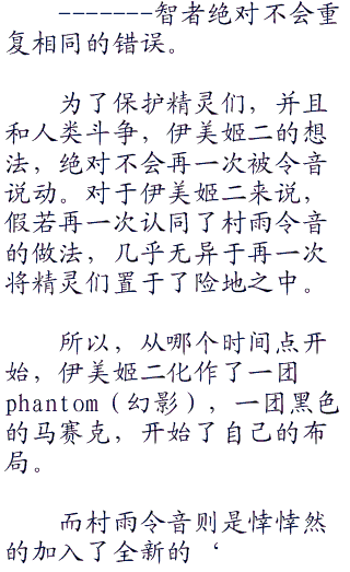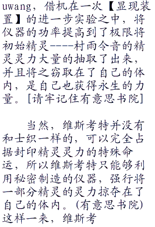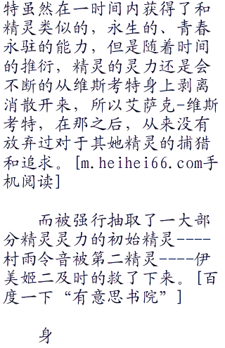 艾萨克-维斯考特,是一个具有强烈野望的人,而精灵们所呈现的永生的、青春永驻的力量,------完全就是任何人都无法抵抗的致命youhuo。