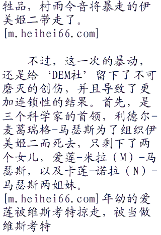 发现自己的逐渐的走向中年,成为怪蜀黍,而村雨令音和伊美姬二则依旧保持着青春永驻的情况之后,维斯考特终于按捺不下自己的y
