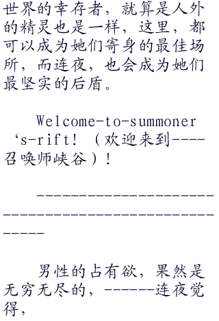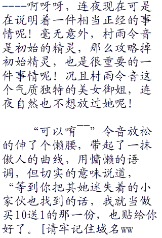 “如果,能够有一个能够让那些孩子可以自由自在生活的世界就好了。”村雨令音嘴角在着微不可察的撅了撅之后又是很好的掩饰了下去,在着再一次的抬头的时候,脸上有换成了和煦的微笑。------精灵们虽然拥有相当厉害的能力,但是面对世界的消亡,已经是束手无策的。
