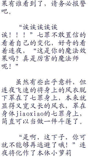 因为,魔女的背后,至少还有一个魔法师会了解她的。就算是应该被绑上火刑架的罪恶存在,但也总是有人会理解魔女的想法的。