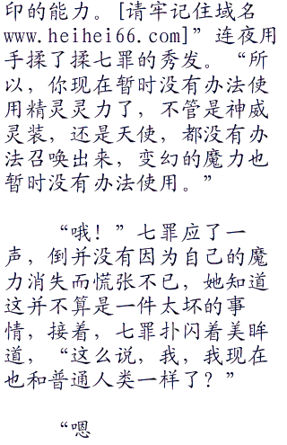 “封印?”七罪的身体一颤,接着抬起了头,扑闪着自己的美眸很是狐疑的看着连夜。