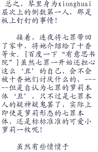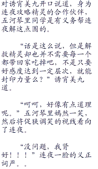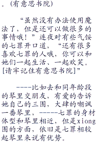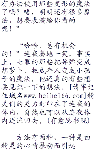“你的衣服消失是因为力量被我封印的自然情况,所以,你并不需要慌乱什么。”在返回家里的道路上,连夜对用大衣像包粽子一样包裹住全身的七罪解释道。