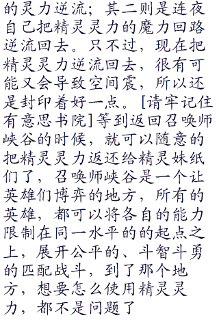“是的,封印,你的力量这会已经被我给封印了。说起来也算是魔法的力量吧,我有着能将对我好感达到百分百的精灵的力量给封