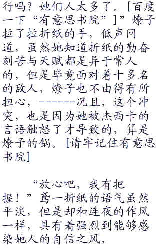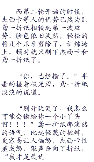 “打败这些人,我一个人足以!!!”鸢一折纸上前淡淡的说道,本来她并不想插手这些事情的,现在还在AST部队之内,只是为了能够保证能有训练的场所罢了。