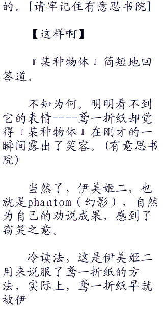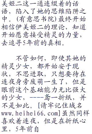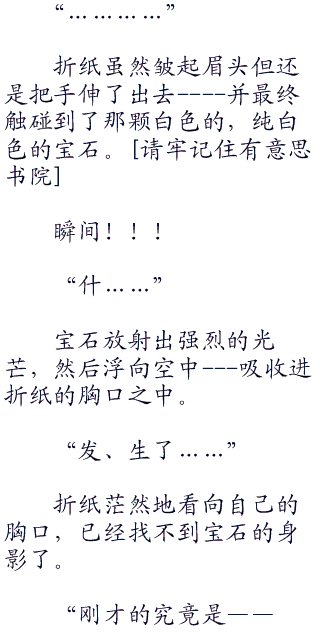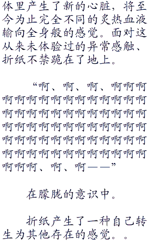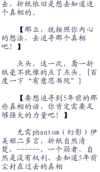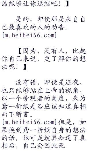 即使在连夜的苦笑里,折纸知道,这个真相,对于她来说,是十分令人震惊的真相,令人震惊到连夜不得不缄口不语,在折纸面前对这个真相保密。