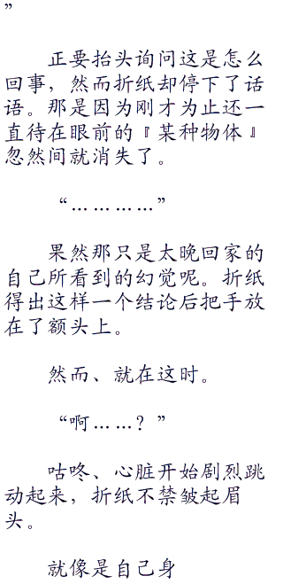 但是,即使如此,即使连夜说过“有些事情,必须一直掩埋!”,但是,鸢一折纸,依旧想要知道啊!