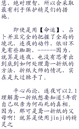 前面也说了,虽然【命运】技能吊炸天,可以随意侦测周围的情况,占卜她人的命运,------,但是谁t会把【命运】当做电灯泡一样一直开着啊,那就是纯粹的大变态了吧!!!